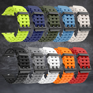 Mäkký, hustý materiál vyrobený zo silikónu je príjemný na pokožke a dokonale sa prispôsobí zápästiu. Klasický tŕňový uzáver zaisťuje dodatočnú bezpečnosť a pohodlie.